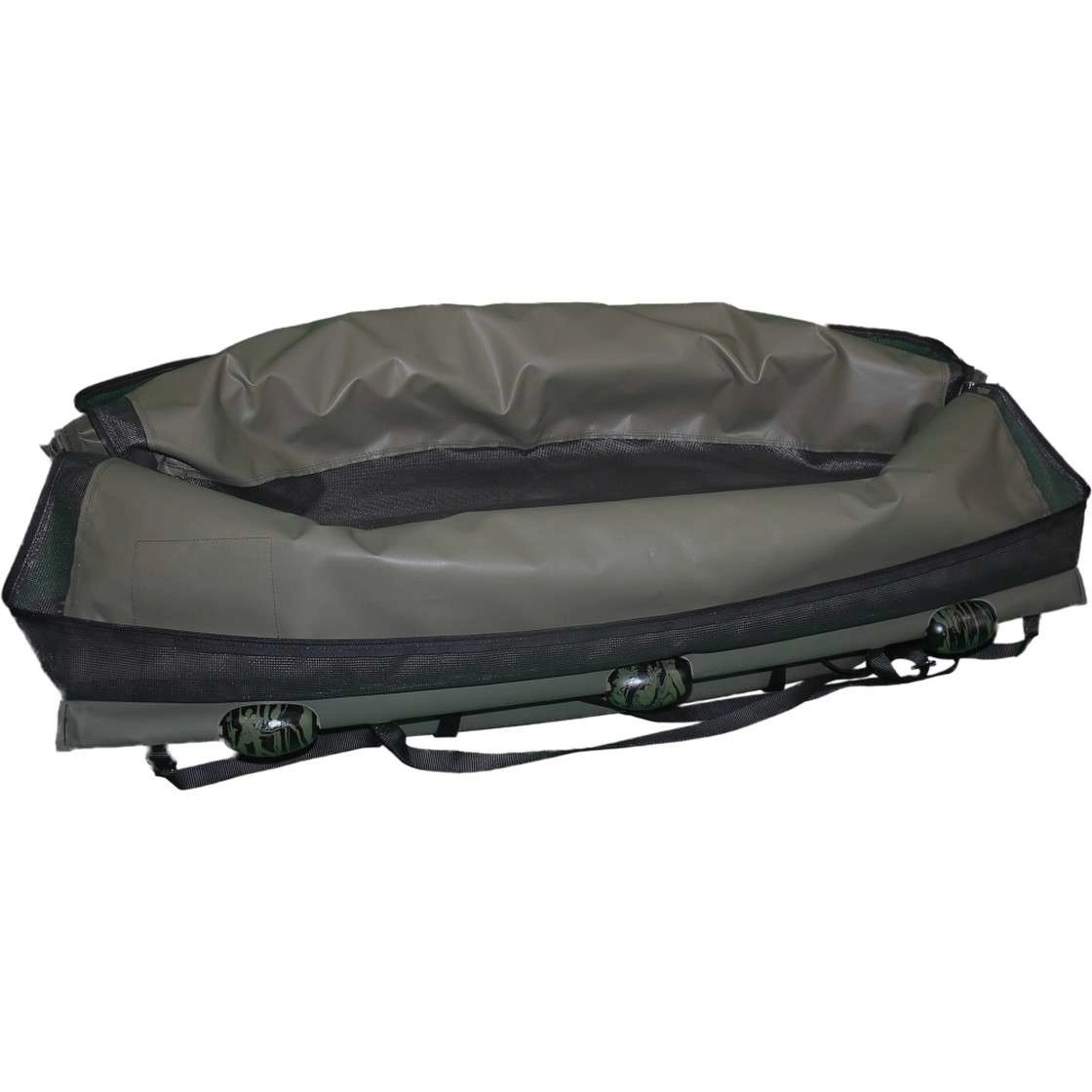 Zeer goede circulatie, extreem snelle waterafvoer optimaal drijfvermogen door 6 stevige drijvers in camou zwart / olijf.